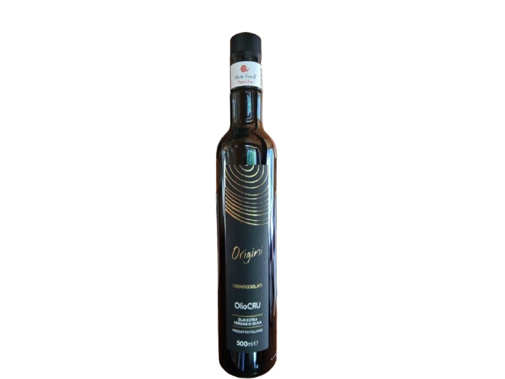 Jednodruhový vypeckovaný extra panenský olivový olej, vlajková loď farmy OlioCru, získal mnohonásobná ocenění v hlavních italských a mezinárodních olejových soutěžích. Vyrábí se pouze z dužiny oliv, což poskytuje vysoké množství aromatických sloučenin a ovocné tóny, které přetrvávají dlouhou dobu. Na patře zaujme jemnými tóny posečené trávy a zelených mandlí a dokonale vyváženými kořeněnými a hořkými tóny.